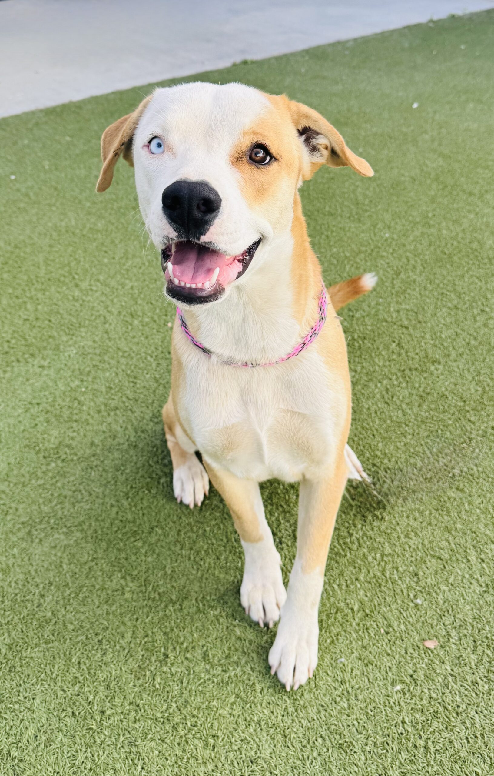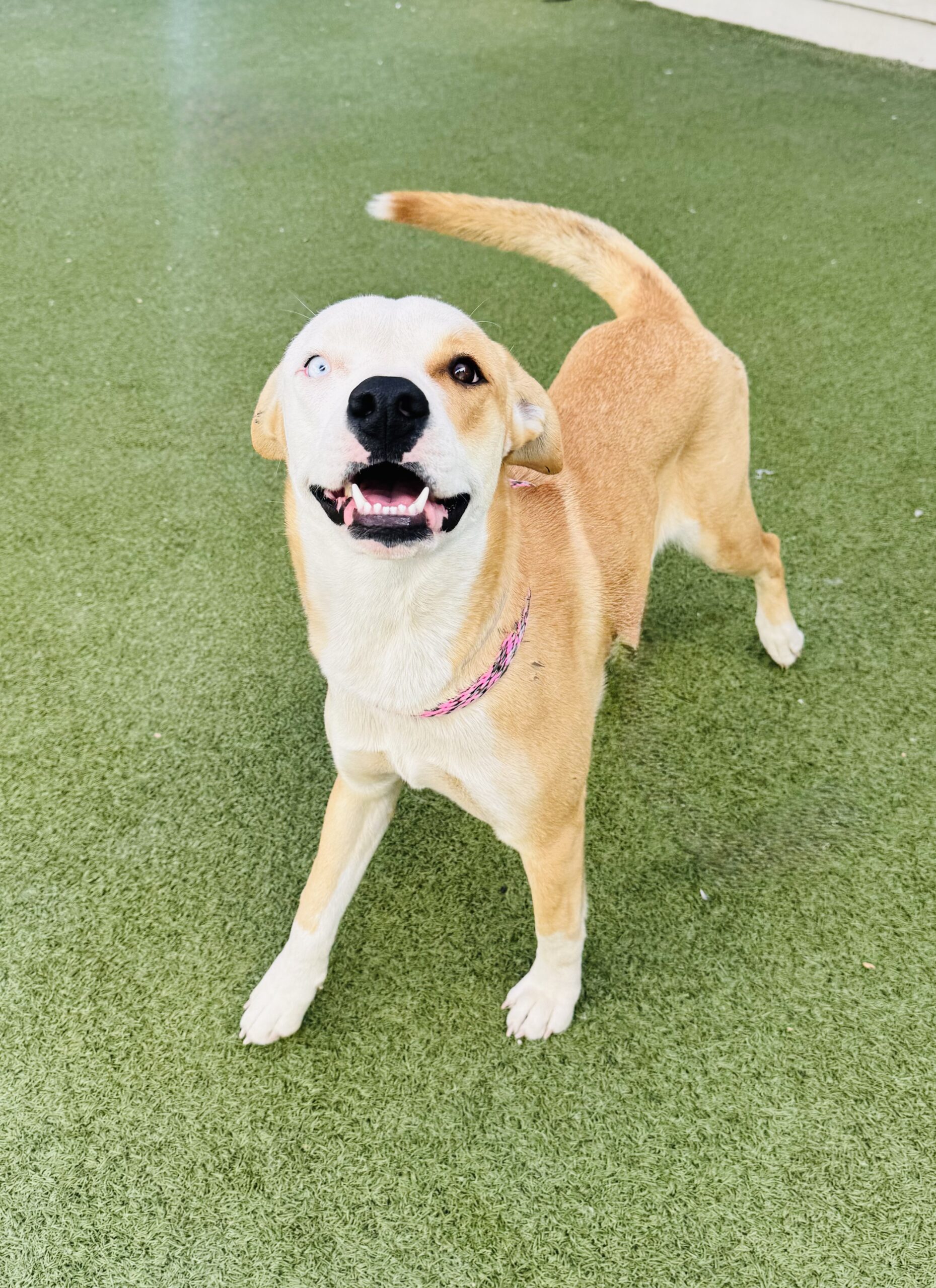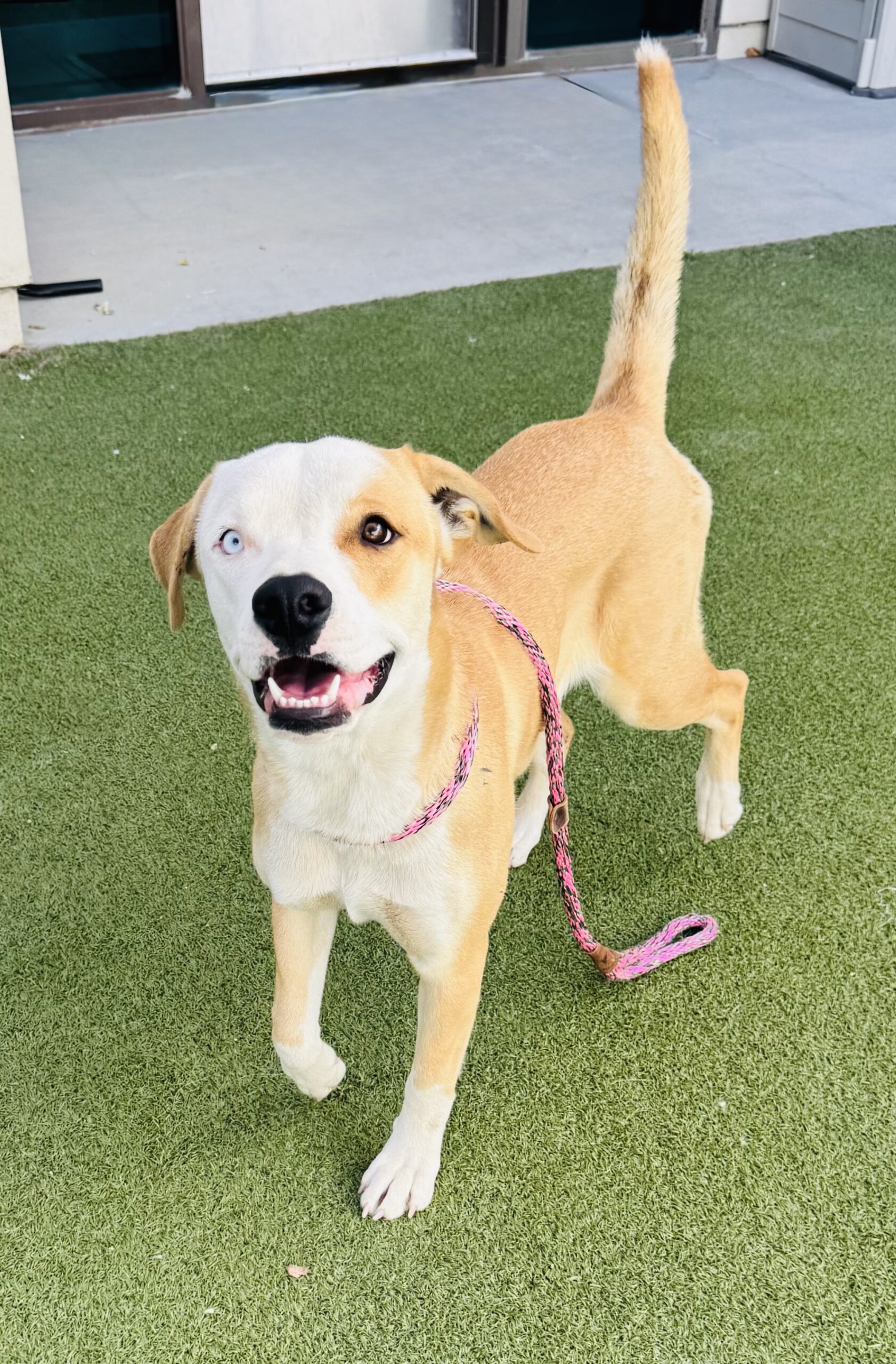 She walks beautifully on a leash, is eager to learn, and thrives on positive attention and connection. We absolutely love her sparkle and spirit — she brings light wherever she goes.