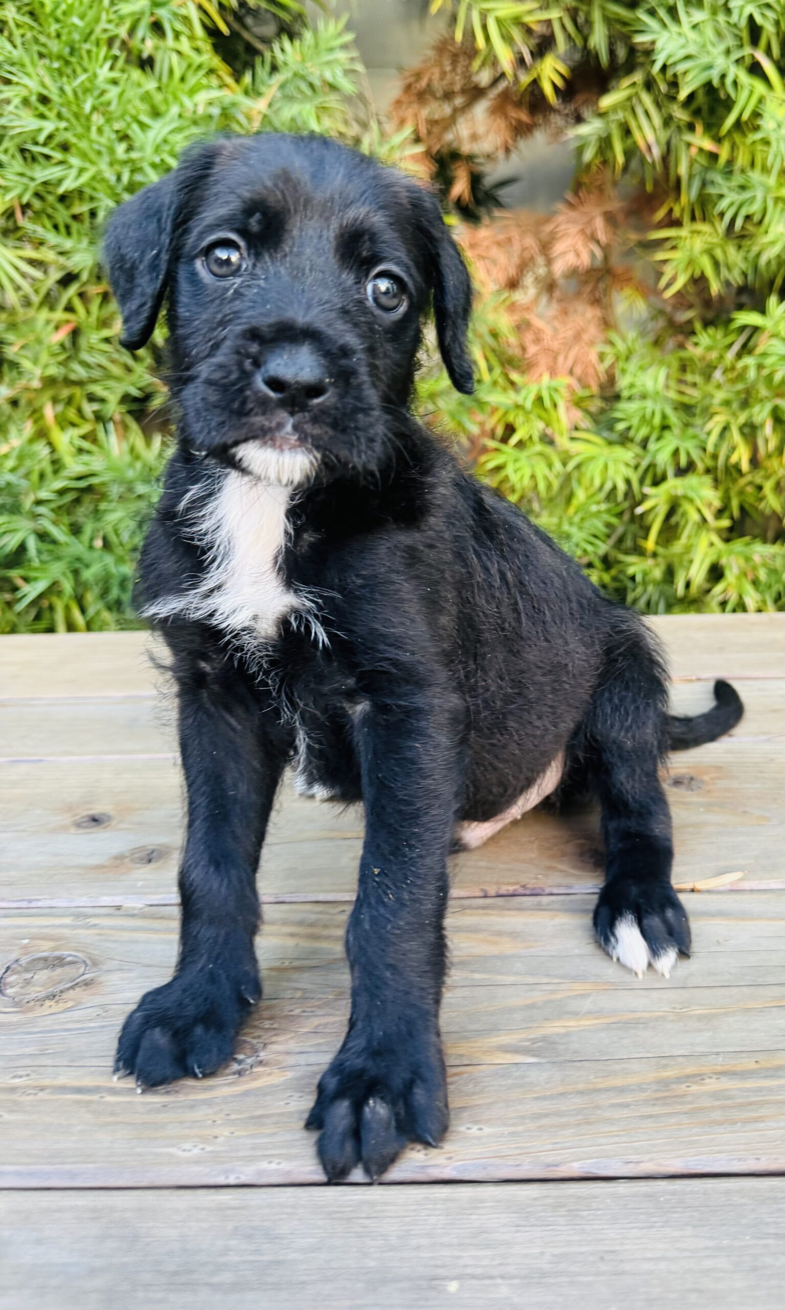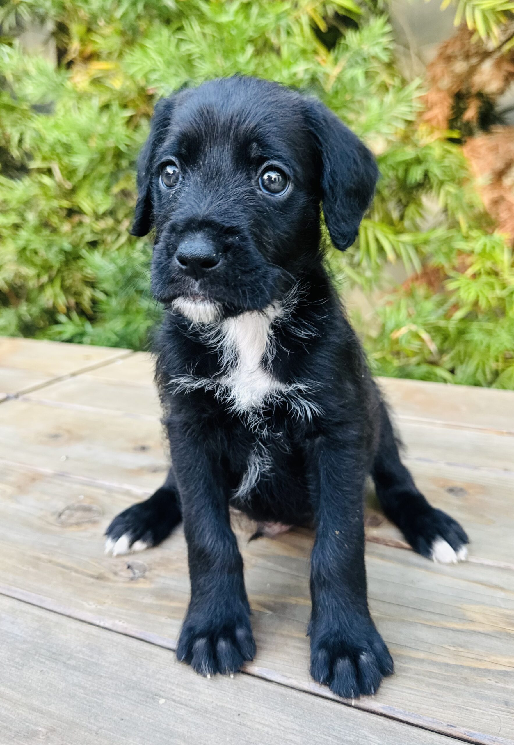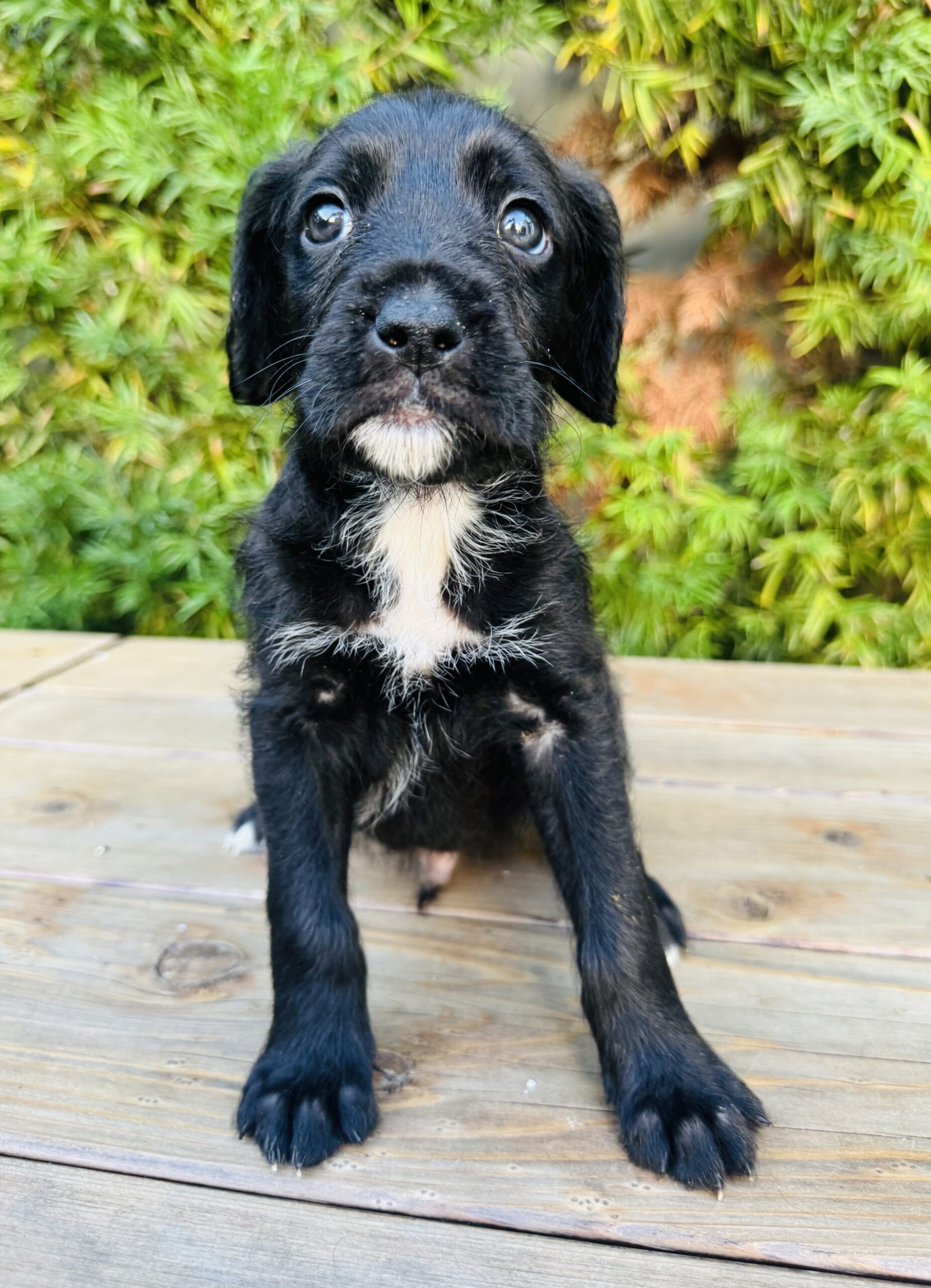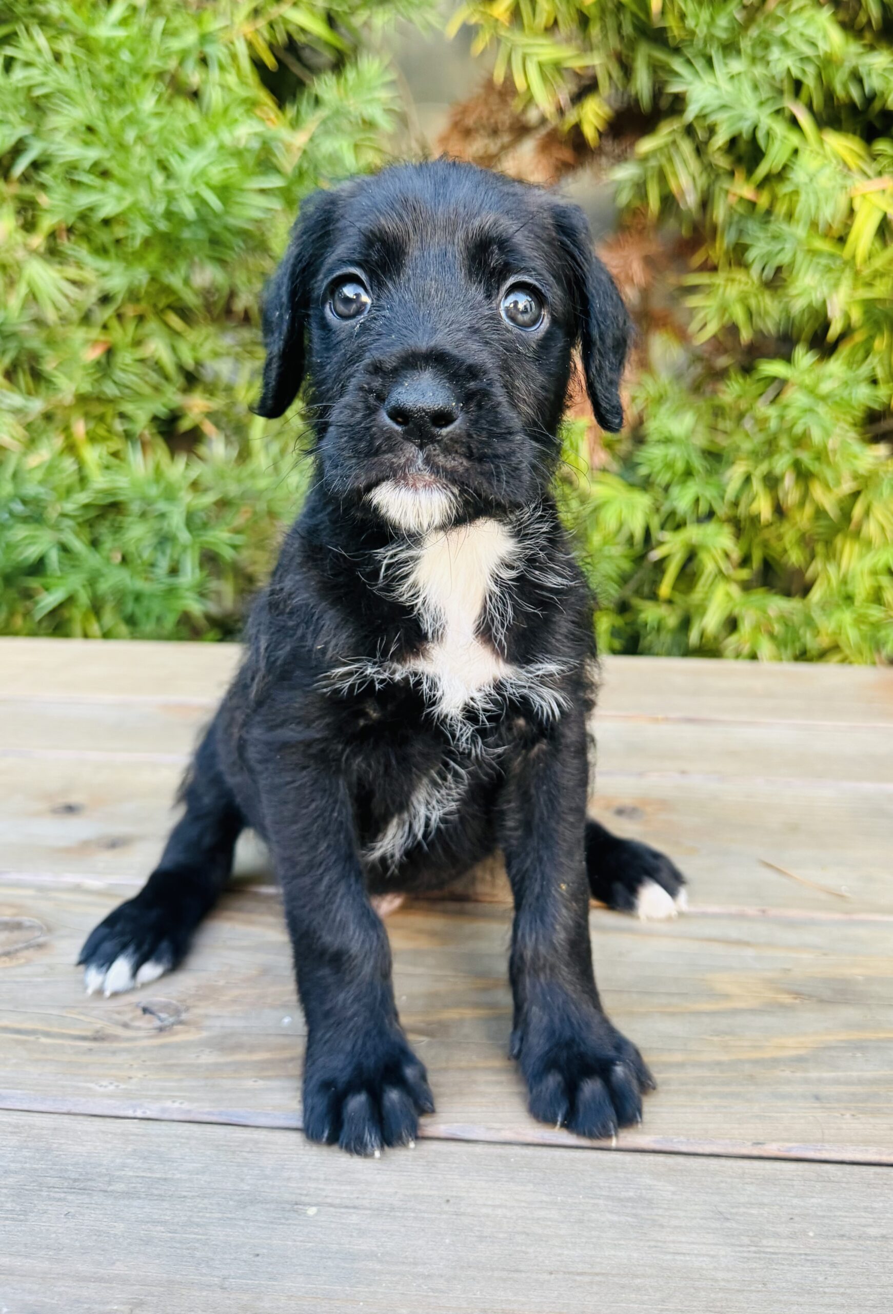 This 6-week-old Boxer/Poodle mix is pure magic. We know the mix sounds surprising, but we’ve seen photos of both parents—he's the real deal!