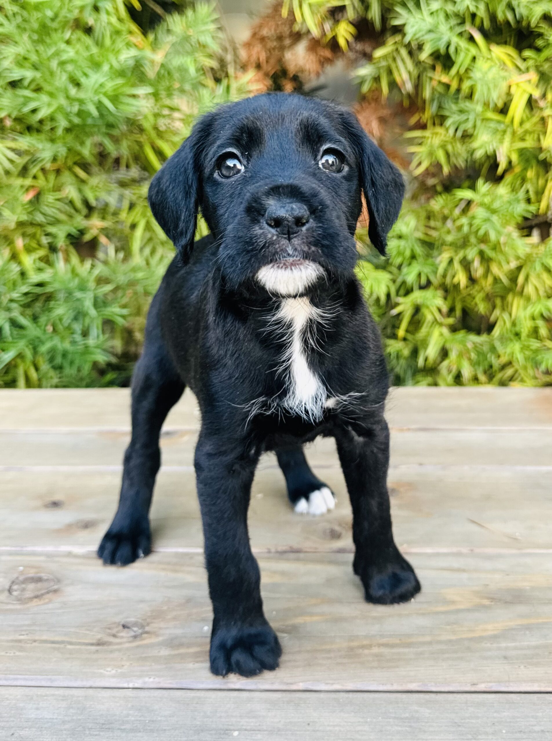 This 6-week-old Boxer/Poodle mix is pure magic. We know the mix sounds surprising, but we’ve seen photos of both parents—she’s the real deal!