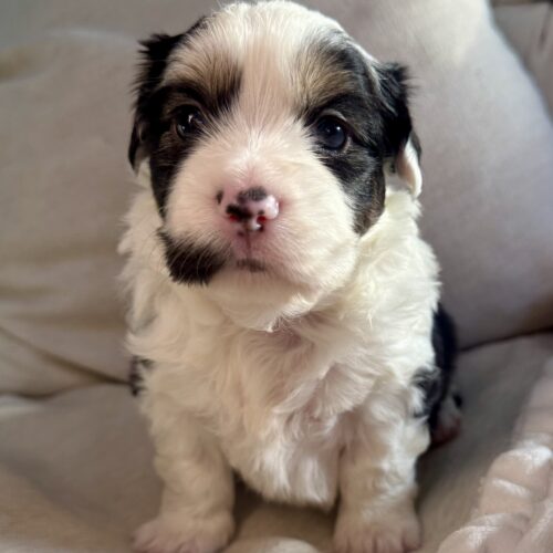 Meet Moo! This little munchkin is 6 weeks old and will be available for adoption in just two weeks. His mom, Josie, is a small collie-type mix weighing about 28 pounds. We expect this pup to grow into a mid-sized dog when fully grown.
