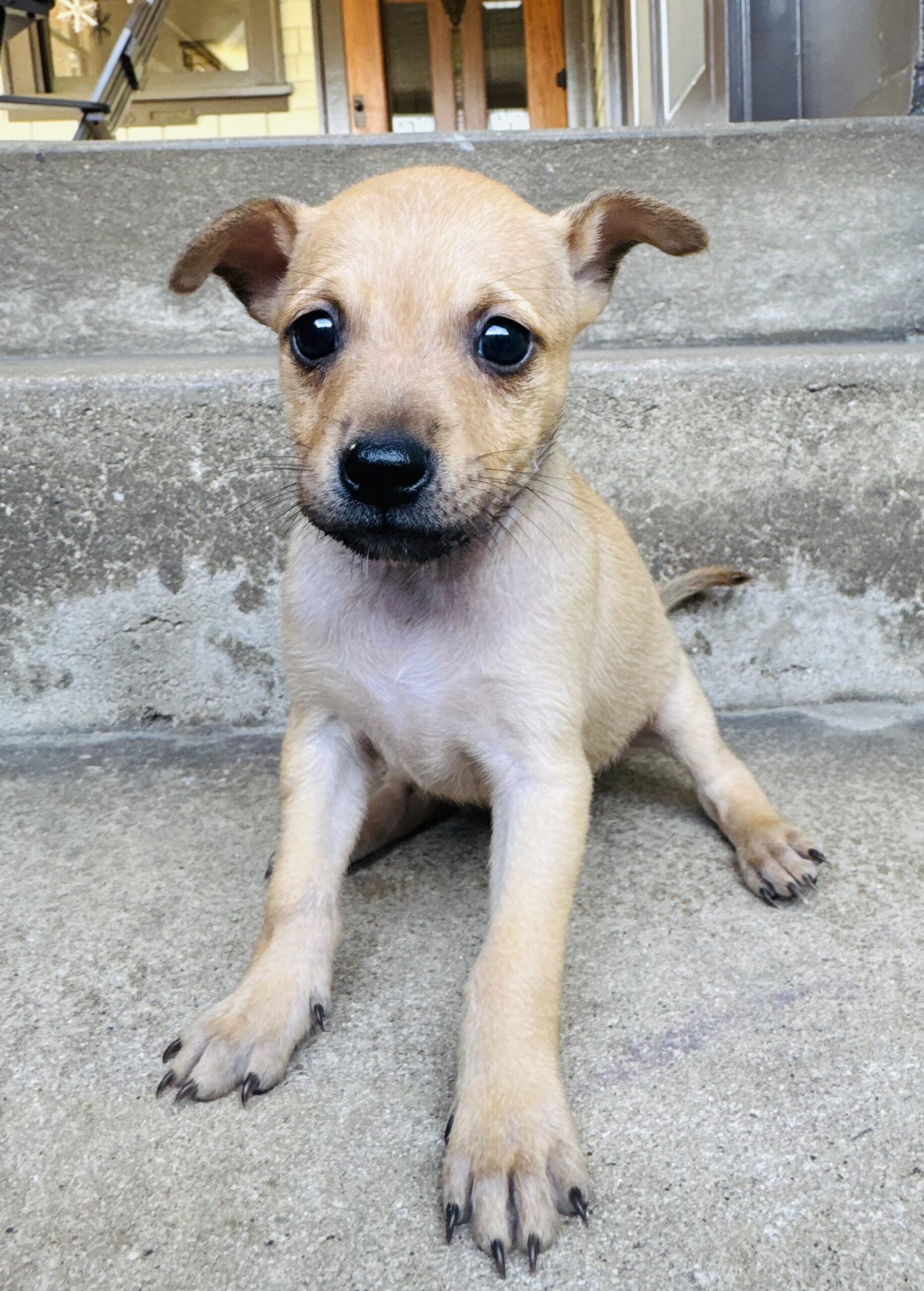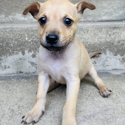 This little angel is just six weeks old and will be ready for adoption in two weeks. We believe Pixie is a Chihuahua / Miniature Pinscher mix, so she’ll stay on the small side when fully grown.