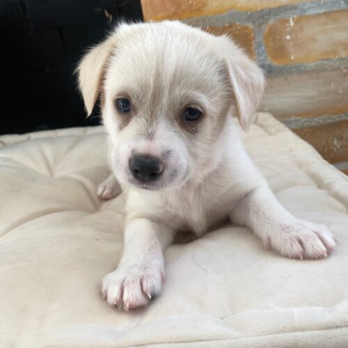 Meet Polar Bear! This little munchkin is 6 weeks old and will be available for adoption in just two weeks. His mom, Josie, is a small collie-type mix weighing about 28 pounds. We expect this pup to grow into a mid-sized dog.